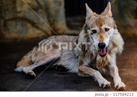 草むらで休む雄ライオンのアップ(セレンゲティ)