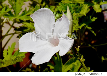 三鷹中原に咲く白いサンパラソル(マンデビラ)