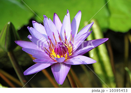 調布市の植物園に咲く紫色のスイレン
