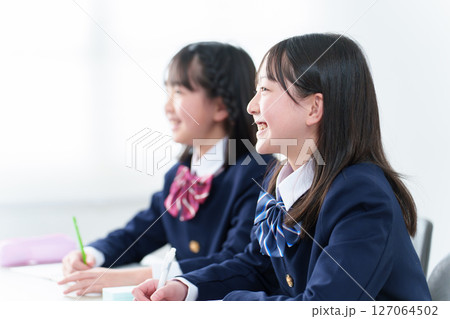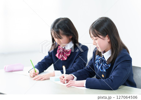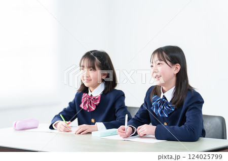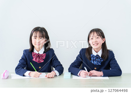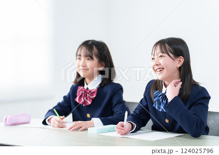 塾の教室で勉強する女子中学生