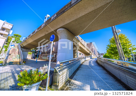 日本の横浜都市景観 横浜市営地下鉄 中川駅(東京都市大横浜キャンパス前)前などを望む