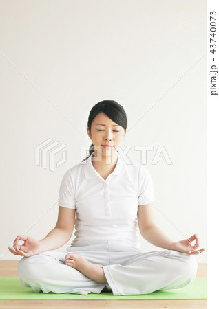 Close up Asian sporty people practicing yoga in Class Lotus position
