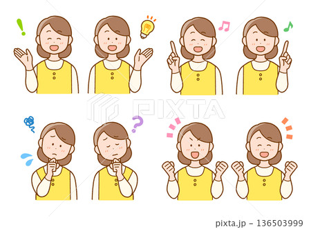 エプロン姿のスタッフ(女性)イラスト8点セット|保育・介護・福祉