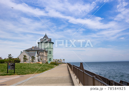 夏の神戸舞子公園にある孫文記念館と瀬戸内海