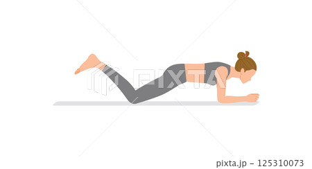筋トレ:プランクをする若い女性イラストセット(正しいフォーム)