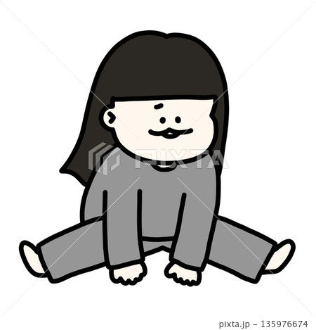 足が開かず苦労するスウェット姿の女性 ストレッチ 運動不足