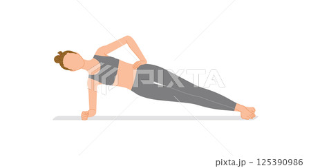 筋トレ:プランクをする若い女性(正しいフォームのサイドプランクレッグリフト)