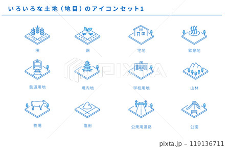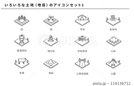 いろいろな種類の土地(地目)のシンプルアイコンセット1、ベクター素材