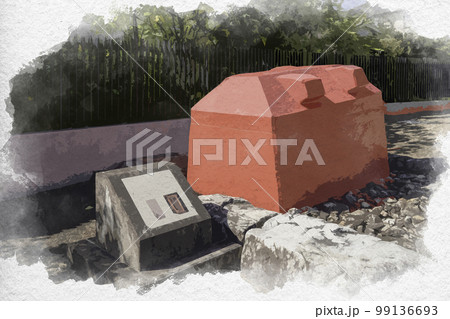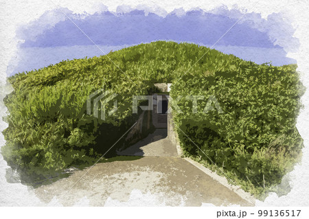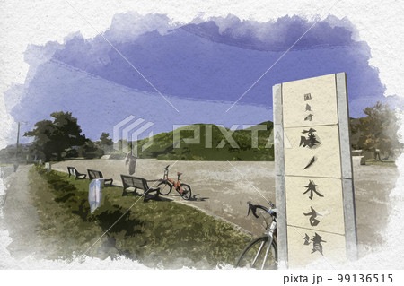 水彩画風 藤ノ木古墳 奈良県生駒郡斑鳩町