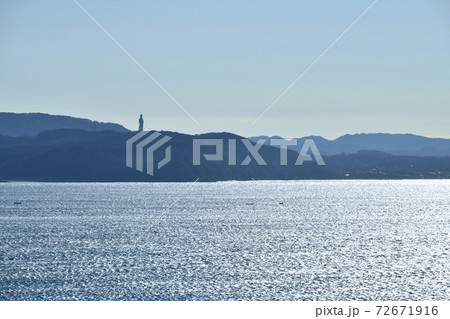 東京湾観音を富津岬から望む