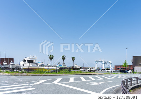 看板・案内板 青空を背景に道の駅スポット風景「道の駅 宇土マリーナ おこしき館」宇土市