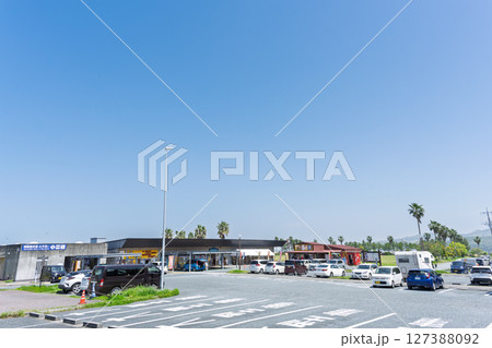 青空を背景に道の駅スポット風景「道の駅 宇土マリーナ おこしき館」宇土市