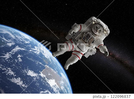 Astronaut spaceman do spacewalk while working for spaceflight mission