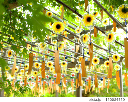 風鈴寺とも呼ばれる京都府宇治田原町・正寿院の風鈴まつりで飾られたな夏らしいヒマワリの風鈴