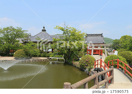 【備中国一宮】吉備津神社 青空と池と摂社・宇賀神社と普賢院 岡山県岡山市北区