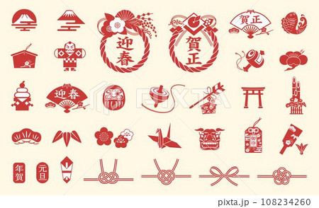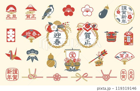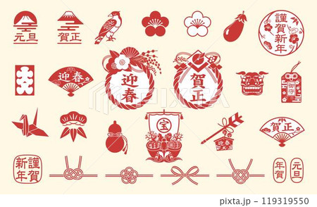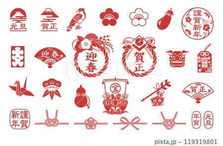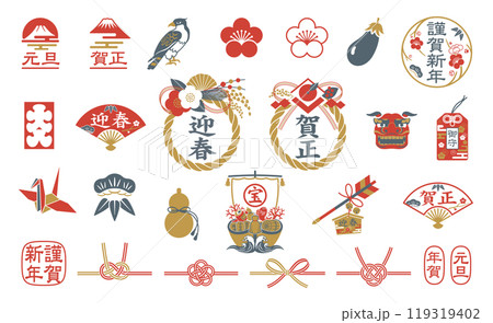 お正月アイコンセット 年賀状素材集 イラスト
