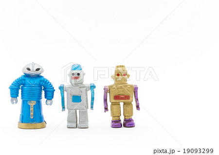先輩ロボットとの初対面の場面で、緊張して固まる後輩ロボット