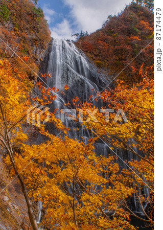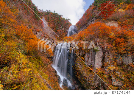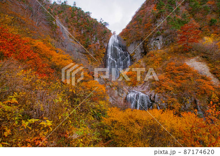 秋の装いの安ノ滝 中ノ又渓谷 秋田県北秋田市