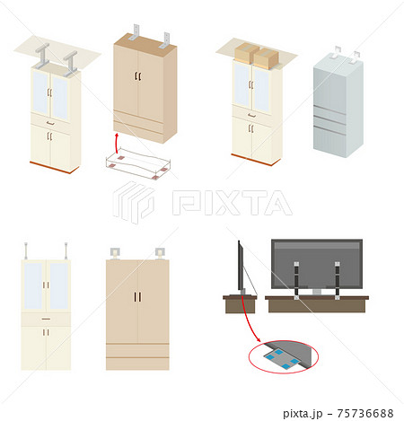 家具の転倒防止 段ボール箱・転倒防止ベルトの使用例のイラスト