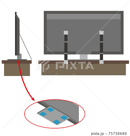 粘着マットやベルトでテレビの転倒防止する方法のイラスト
