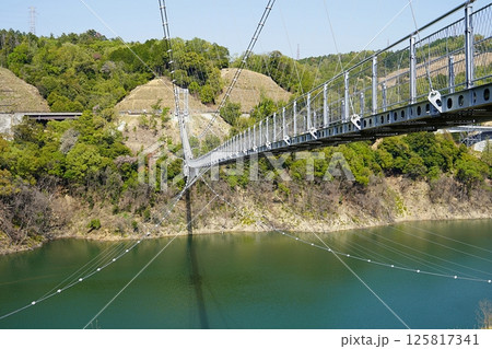 大阪 茨木市 安威川ダム 吊り橋とダム湖(晩春)