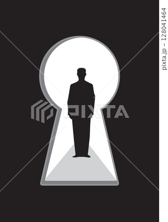 Keyhole shape is shown in front of a dark background. Stock illustration. Vector illustration.