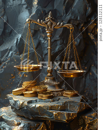 Gold with balance scale. Money management, financial plan, Gold value and price concept. AI Generated.