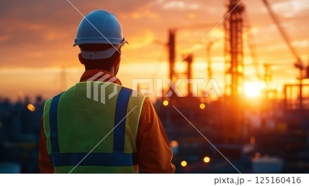 Construction worker overseeing project with helmet view