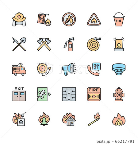 Set of Firefighter Color Line Icons. Fireman, Evacuation Plan, Hydrant and more.