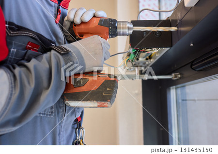 An Electrician Skillfully Installing Electrical Components Using a Power Drill Tool