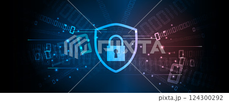 Cyber security neon lock protect data