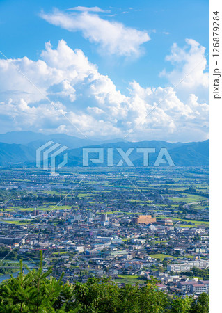《長野県》松本市城山公園からの展望 残雪の北アルプスと松本盆地