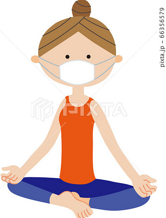 スカ・アーサナ(安楽座のポーズ)のヨガをするマスクの女性