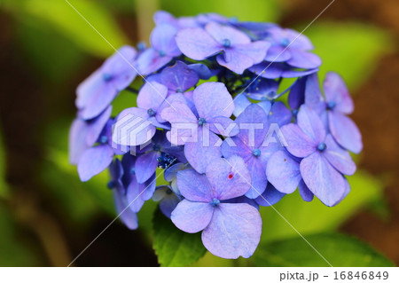 赤紫色の額紫陽花の装飾花