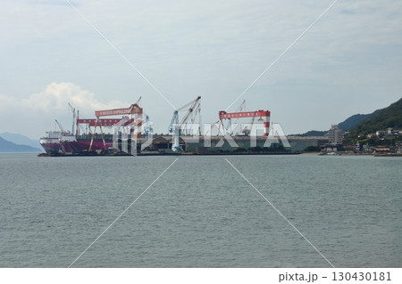 呉線の車窓 安芸幸崎に広がる造船所(広島県三原市)