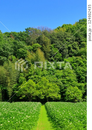 花が咲き 緑が鮮やかな初夏のジャガイモ畑