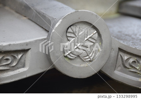 「鷹の羽紋」の軒丸瓦(花岳寺・山門/兵庫県赤穂市加里屋1992)