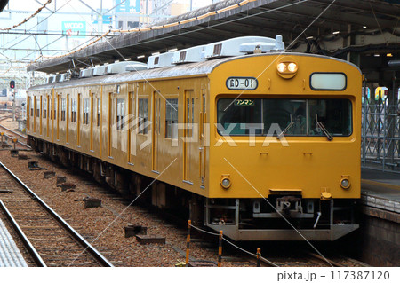 広島駅に到着する呉線103系電車(快速安芸路ライナー:広島→三原)
