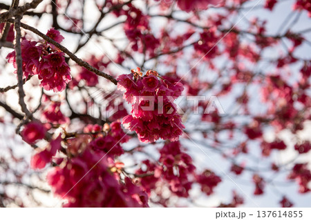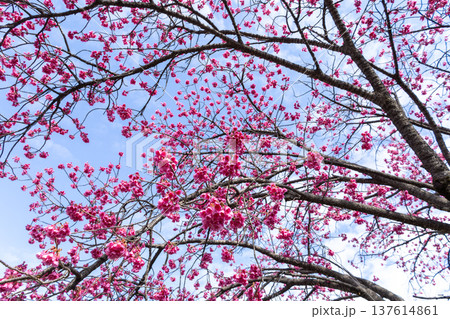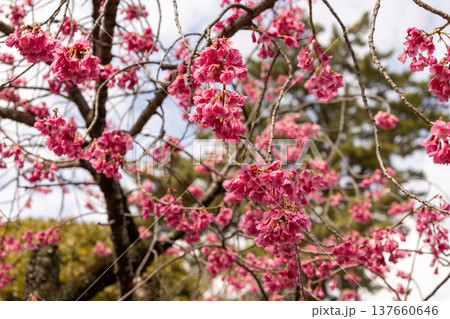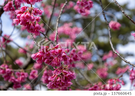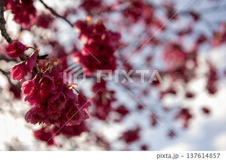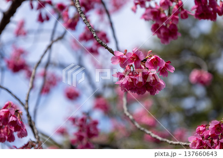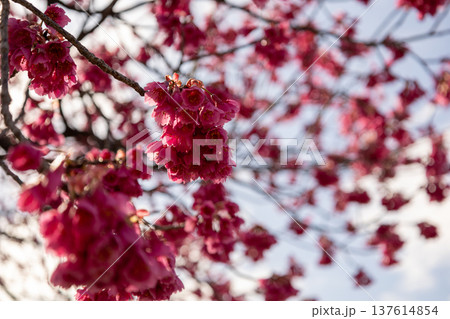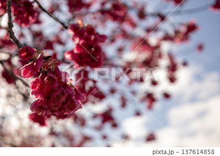 満開の桜の花 寒緋桜
