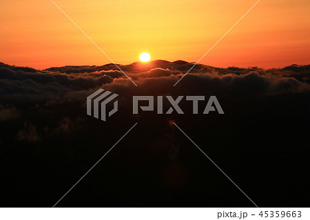 東北飯豊連峰 三国岳避難小屋からの朝の景色 雲海と吾妻連峰と朝陽