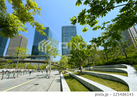 JR大阪駅周辺の風景 新緑が美しい春のグラングリーン大阪