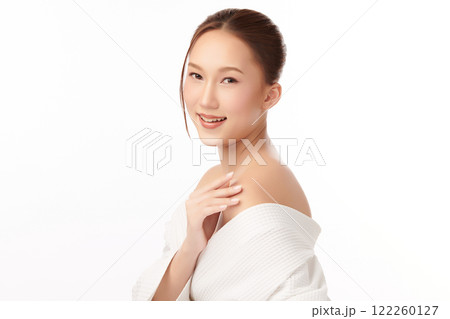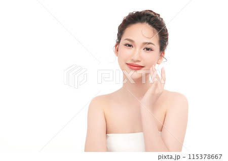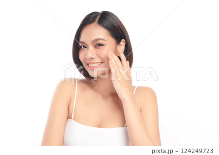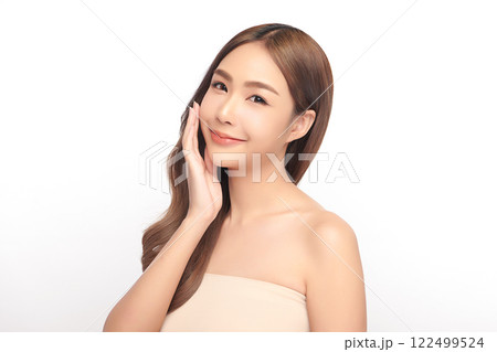 Beautiful young asian woman with clean fresh skin on white background, Face care, Facial treatment, Cosmetology, beauty and spa, Asian women portrait.