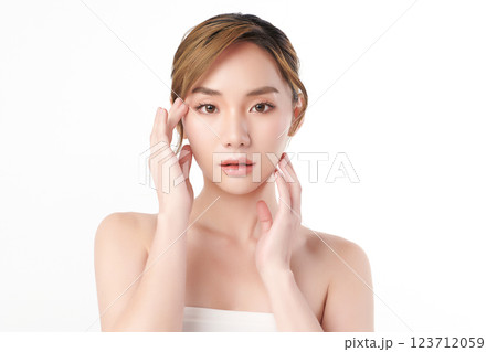 Beautiful young asian woman with clean fresh skin on white background, Face care, Facial treatment, Cosmetology, beauty and spa, Asian women portrait.