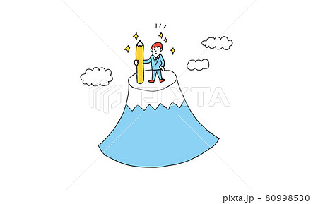 大きな山の頂点まで登った努力家のビジネスマンイラスト