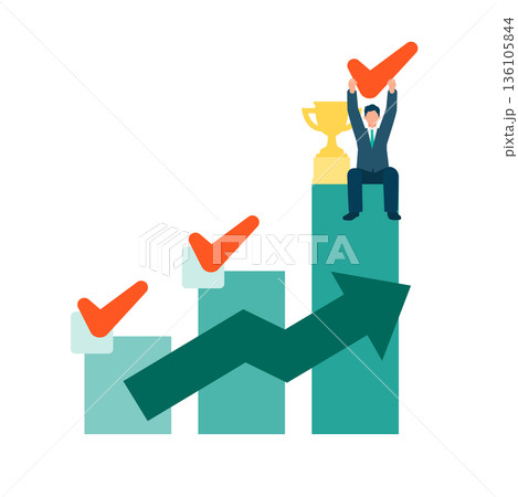 タスク完了と進捗管理を表現したビジネスイラスト 目標達成と成長のイメージ