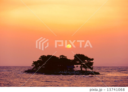 宍道湖の夕焼けと嫁ヶ島と袖師地蔵の風景 島根県松江市
