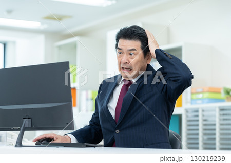 びっくりした表情で唖然とする、シニア世代の男女の上半身ビジネスアイコンセット_ベクター_カラー