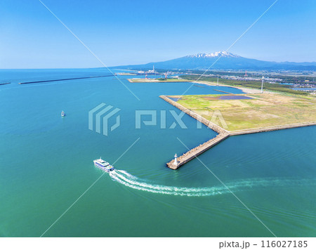 北海道礼文島 香深港を出港するフェリー / Rebun Island, Japan