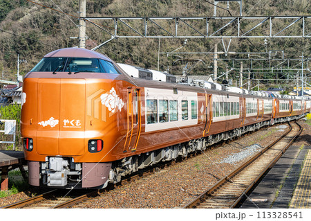 春の伯備線木野山駅を通過するデビュー間もない岡山行き新型特急やくも5 岡山県高梁市