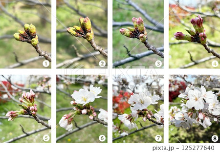 桜のつぼみ_開花までの経過観察写真_8段階_横長_二段
